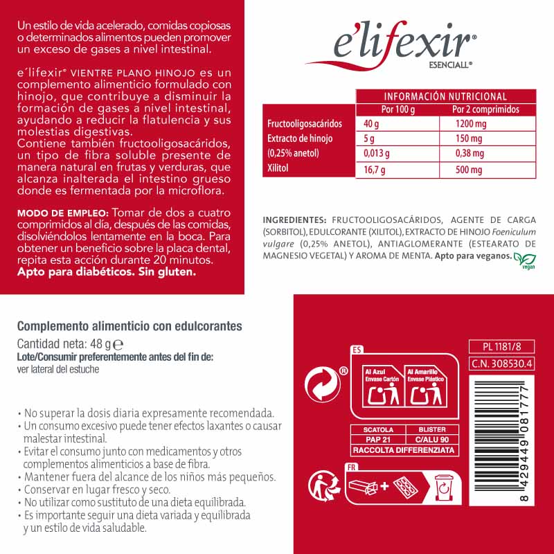Complemento alimenticio anti-gases, gracias al extracto de hinojo que contribuye a disminuir la formación de gases a nivel intestinal. Llévalo siempre contigo y tómalos cuando quieras, ya que son comprimidos masticables con sabor a menta.